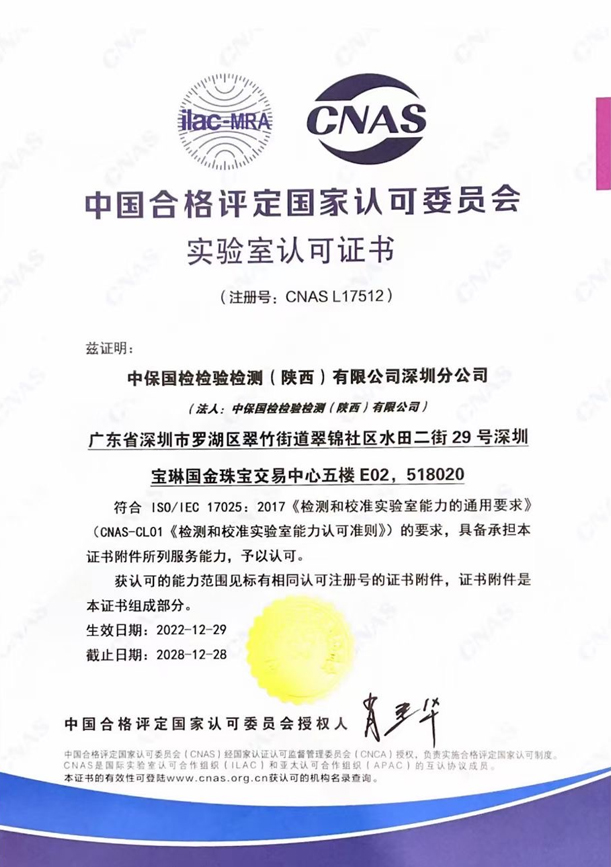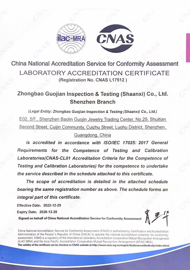 中保国检珠宝检测是经国家有关部门批准,依法设立的专业从事贵金属和珠宝玉石质量检验机构,通过了CMA计量认证,获得了CNAS国家认可实验室及ilac-MRA国际证书互认资质,是公正的第三方金银珠宝首饰检测机构,出具的报告及证书具有法律效力,承担全国范围内的贵金属、珠宝玉石产品委托检验。